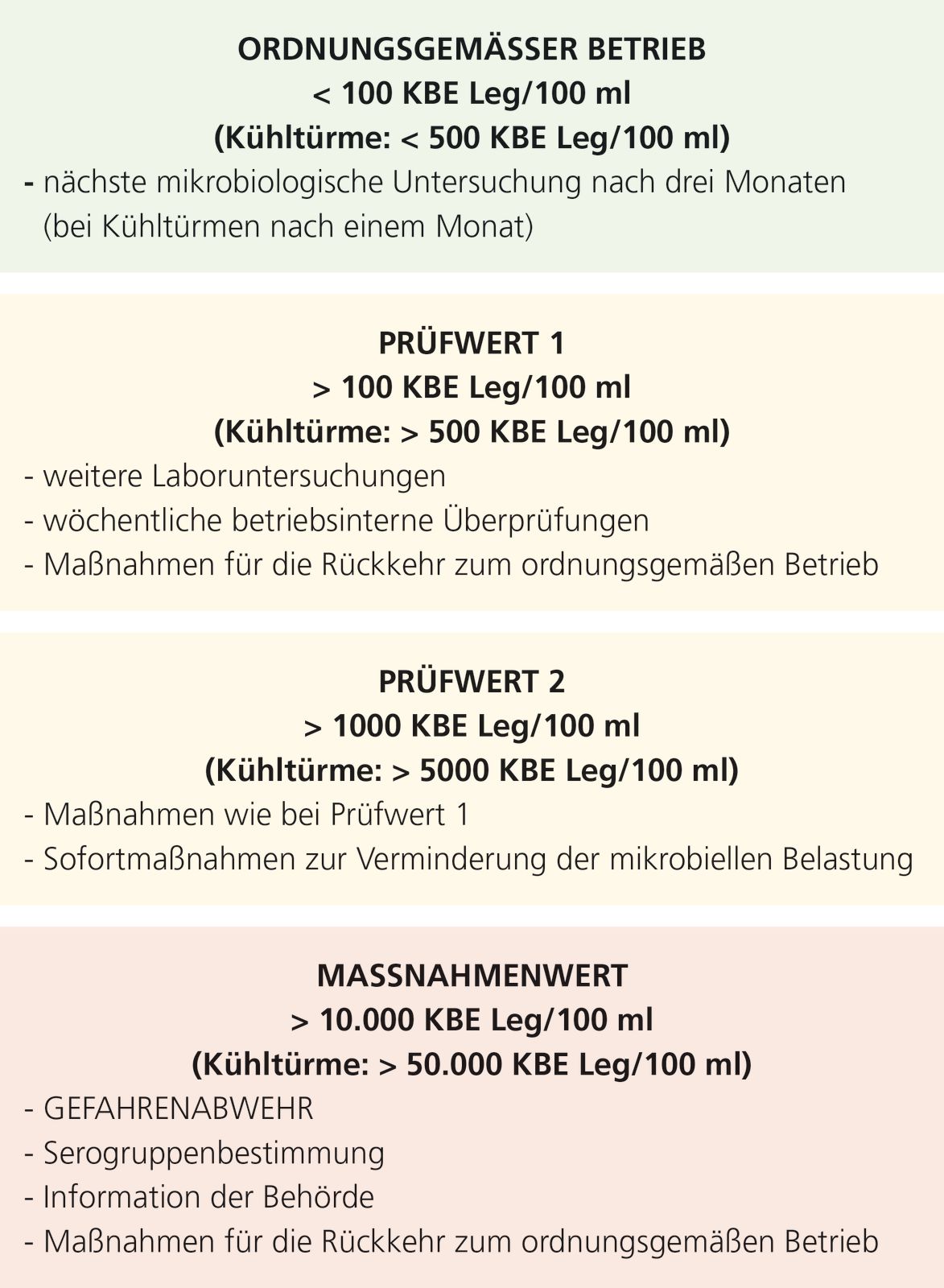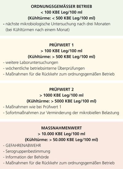 Prüf- und Maßnahmenwerte für die Konzentration von Legionellen nach 42. BImSchV Anlage 1