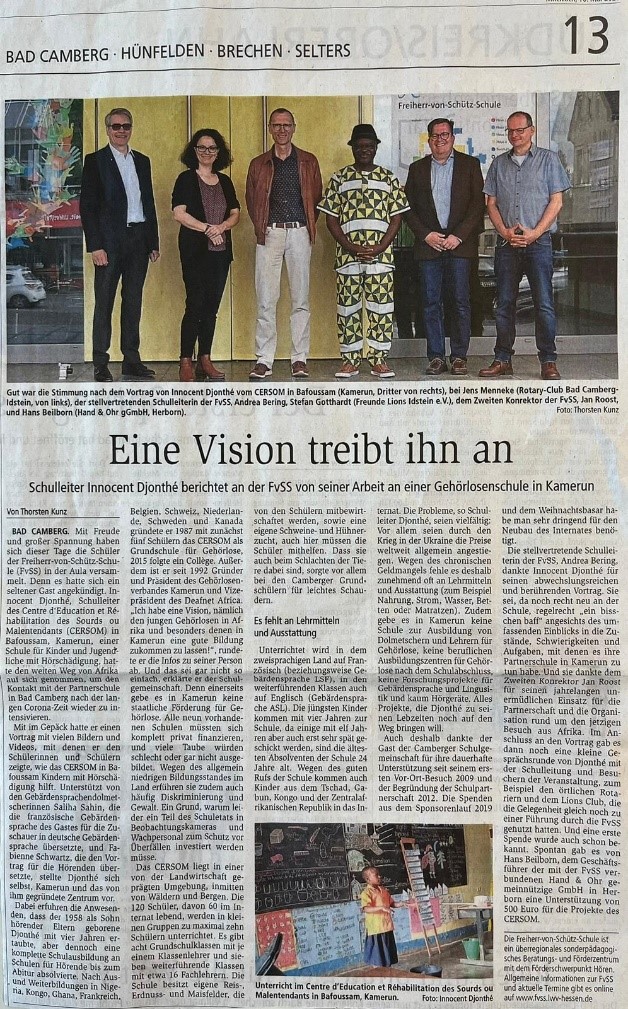 Unter der liebevollen Obhut von Monsieur Innocent Djonthe (selbst gehörlos, sprechend) besuchen in Bafoussam, der Hauptstadt der kamerunischen Westregion, etwa 90 gehörlose und hörgeschädigte Kinder und Jugendliche im Alter von 4 bis 24 Jahren eine Schule mit angeschlossenem Internat: