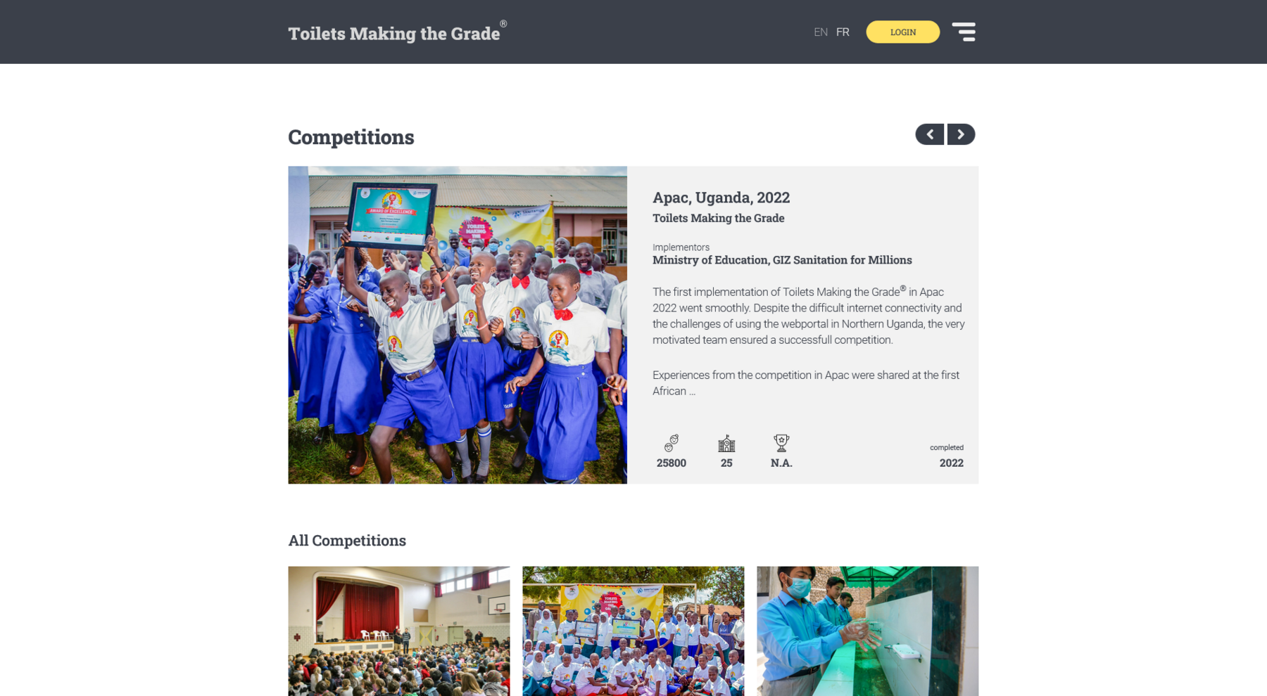 Mithilfe unserer Spenden und denen anderer Förderer konnten diese Materialien zur Hygieneerziehung der GTO 2017 einer notwendigen Überarbeitung unterzogen werden. 2018 wurden weitere Optimierungen vorgenommen. So konnten die Materialien auch in eine Sammlung von Bildungsaktivitäten für Schulen mit Doppel-Schichtbetrieb in Jordanien (für jordanische und geflüchtete syrische Kinder) aufgenommen werden, welche die GTO für das jordanische Bildungsministerium erstellt hat, um die Sanitärsituation an den Schulen zu verbessern. 2019 wurden die bisherigen Materialien zu „My School Loo Kits“ weiterentwickelt. Die „Aufklärungstaschen“ werden an die Schulen dieser Welt getragen, um dort die hygienischen Bedingungen und damit die Gesundheit der Bevölkerung zu verbessern. Ganz konkret erfolgreich zur Anwendung kamen die Kits beispielsweise auf den von Unruhen und Naturkatastrophen stark gebeutelten Philippinen. Angesichts der Covid-19-Pandemie wurde 2020 auf Basis des Kits eine neue Variante zur Pandemieprävention („My Healthy Friends“) entwickelt. Diese Materialien vermitteln die wichtigsten Hygienebotschaften (Abstandsregeln, korrektes Händewaschen, Husten-/Niesverhalten, Mund-Nase-Schutz) auf eine spielerische Art und Weise. Parallel zur ersten Erprobung des COVID-19-Aufklärungskits in Südsudan wurden 2021 die MHF-Materialien weiter ergänzt und an weitere regionale Kontexte angepasst, wozu unsere Spende anteilig beitragen konnte (z.B. Jordanien). Das war auch 2022 der Fall. Mithilfe von Malteser International kommen die MFH nun zusätzlich in Uganda und der Demokratischen Republik Kongo erfolgreich zum Einsatz. Seit 2023 liegt der Fokus mit dem Auslandsprojekt Toilets Making the Grade® (TGM), das auf Schulwettbewerben basiert, wieder stärker auf der Verbesserung der Toiletten- und Hygienesituation an Schulen. 2023 wurde eine vielsprachige globale TMG-Webseite gebaut, sodass TGM im 5. Jahr mit Start in Kolumbien auf Südamerika ausgeweitet werden konnte. 2024 fand dann der erste Schulwettbewerb in Sambia statt. Gemeisam mit GTO bauen wir auf eine sich von hier ausweitende Verbesserung der Toiletten- und Hygienesituation im südlichen Afrika.