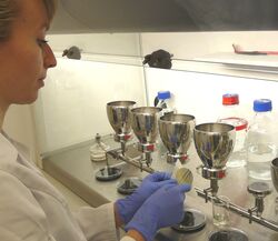 - regelmäßige mikrobiologische Untersuchungen des Nutz- und Zusatzwassers durch ein nach DIN EN ISO/IEC 17025 und für die Probenahme und mikrobiologische Untersuchungen von Nutzwasser gemäß §3 Absatz 8 der 42. BImSchV akkreditiertes Prüflabor
